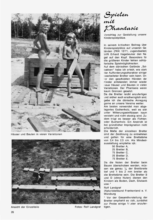 Spielen mit Phantasie Erhard Hagebeuker kritisierte in der Dezember-Ausgabe des Vorjahres die mangelnden Spielmöglichkeiten für die etwas älteren Kinder. In dieser Ausgabe gibt es eine Bauanleitung zu einem kleinen Holzhäuschen, welches die Kinder zum größten Teil selber machen können. |