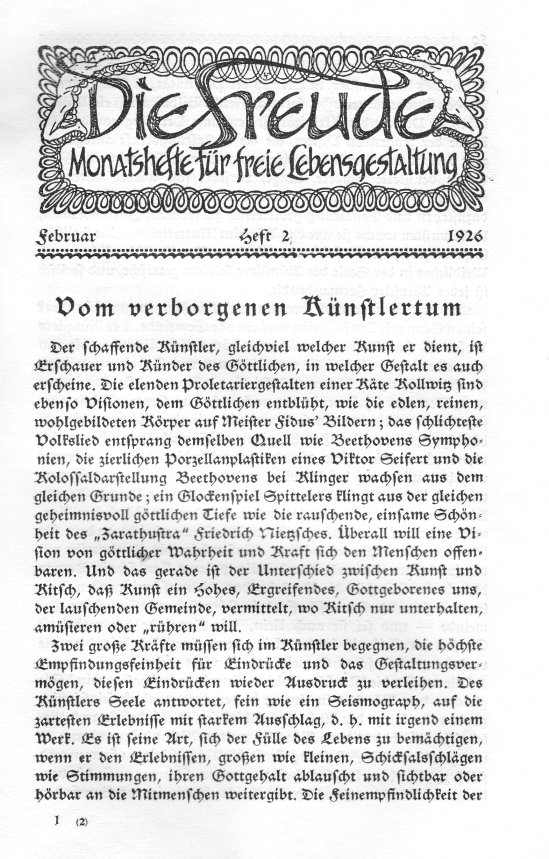 Die FreudeMonatshefte für freie Lebensgestaltung3. Jahrgang • Heft 2 - Februar 1926 |