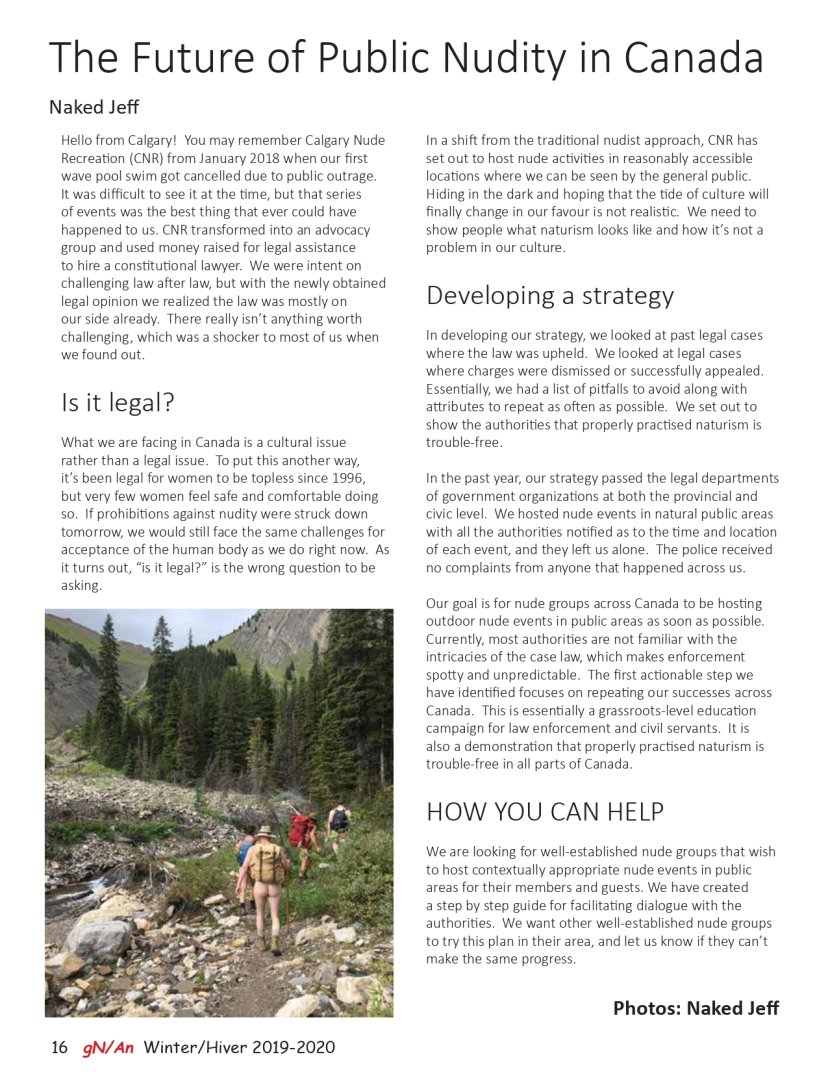 Going NaturalThe Magazine for Nude Living / Le Magazine du NaturismeKanadaAusgabe 34 • 19. Jahrgang Winter 2019 / Frühjahr 2020 |