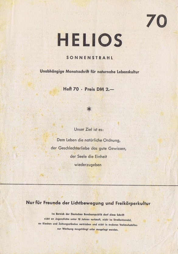 HELIOSSonnenstrahl • Geist und GestaltUnabhängige Monatsschrift für naturnahe Lebenskultur Heft 70 • Oktober 1956 |