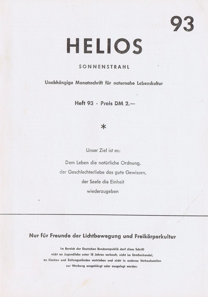 HELIOSSonnenstrahl • Geist und GestaltUnabhängige Monatsschrift für naturnahe Lebenskultur Heft 93 • September 1958 |