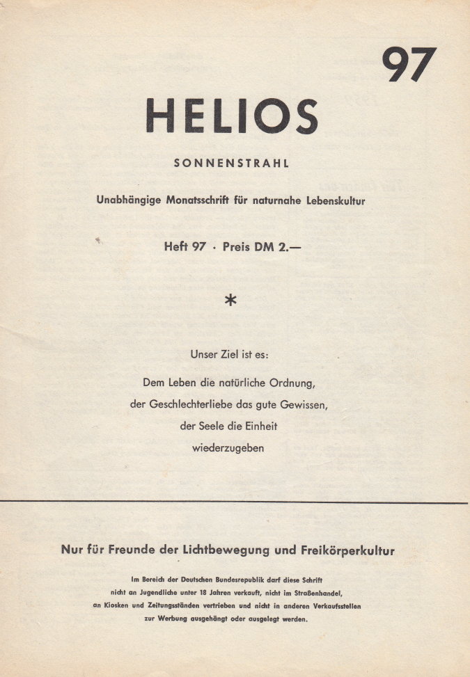 HELIOSSonnenstrahl · Geist und GestaltUnabhängige Monatsschrift für naturnahe Lebenskultur Heft 97 • Januar 1959 |