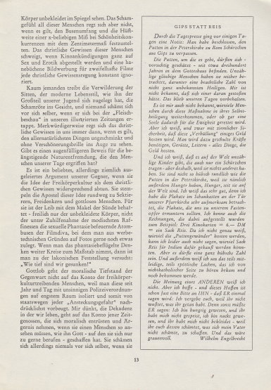 Inhaltlich gesehen, haben viele der Texte keinen direkten Bezug zur Freikörperkultur.