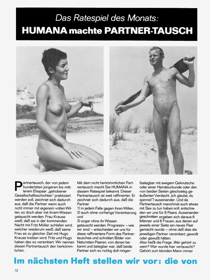 | Partnertausch Ein „kleines Spiel” für die Leserschaft, welche die einzelnen Frauen und Männer wieder zu Paaren (richtig) zusammenfügen sollen. |