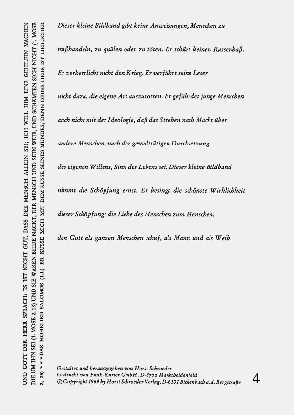 Die Bilder bis Seite 16 zeigen das frisch verliebte junge Paar Erhard und Ursel Hagebeuker. Es sind beileibe keine gestellten Aufnahmen, es sind auch keine Profi-Modelle ... nein, diese Liebe ist echt, was man den Bildern auch wirklich ansieht. Erhard und Ursel haben geheiratet und ihre Liebe ist heute nach gut 50 Jahren, immer noch so frisch und stark, wie am ersten Tag. Erhard war in den Jahren von 1971 bis 1973 Bundesvorsitzender der fkk-jugend e.V. |