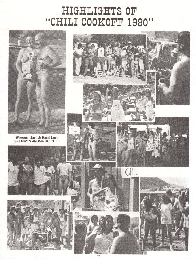 Programmheft zur 2. »Chili Cookoff & Western Stuntman Competition« auf dem Gelände der „Treehouse Fun Ranch”, dem heutigen „Deer Park Nudist Resort Tiki Hut” in Kalifornien, USA. Das Fest und die zahlreichen Wettbewerbe fanden am Wochenende des 11. und 12. April 1981 statt. Wer kocht das beste und schärfeste Chili? Wer ist das hübscheste Cowgirl, der schönste Cowboy? Dazu eine Western-Stunt-Show mit einem Western- Stunt-Wettbewerb - jene Wettbewerbe dann natürlich bekleidet, soll ja auch historisch korrekt sein. Neben diesem umfangreichen und interessanten Wochenend-Programm enthält das Heft auch Informationen und Angaben zu der ehemaligen »Treehouse Fun Ranch«. |