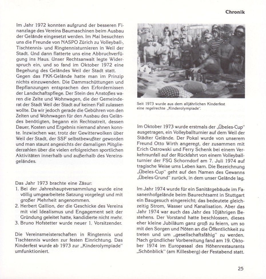 Grußworte des Oberbürgermeisters Manfred Rommel, Helmut Sickmüller (Bürgermeisters der Gemeinde Wurmnberg), Werner Schüle (1. Vorsitzender des Sportkreises Stuttgart), Karl Dreßen (1. Vizepräsident der INF), Detlef Schrader (Präsident des DFK), Kurt Lörcher (1. Vorsitzender des LV Südwest e.V.) und Siegrid Bornemann (1. Vorsitzende) leiten die Broschüre ein, gefolgt von der Chronik und Erinnerungen.