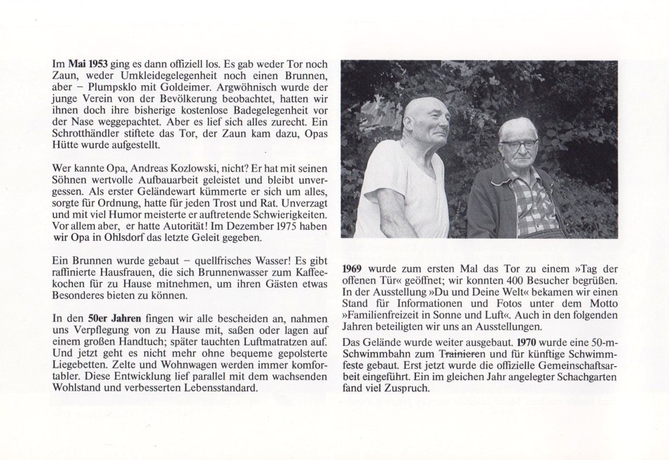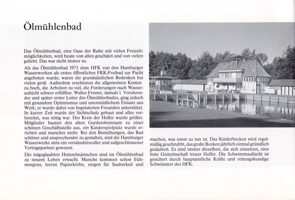 | Mit Grußworten und Glückwünschen des ersten Bürgermeisters Hans-Ulrich Klose, dem 1. Vorsitzenden des Hamburger Sport-Bundes, Herrn Fritz Bauer und des DFK-Präsidenten, Herrn Rudolf Emmel. Einleitende Worte zum Jubiläum von Herrn Jochen Kipker, dem 1. Vorsitzenden des HFK. Mit zahlreichen Bildern wird die Entwicklung des HFK ¹ mit seinen damaligen Außenstellen ² und Untergruppen ³ seit 1953 dokumentiert und die ehemaligen ersten Vorsitzenden des Vereines vorgestellt. Es wird beschrieben, wie die Freizeit- und Sportangebote kontinuierlich ausgebaut und 1969 erstmals ein »Tag der offenen Tür« veranstaltet wurde. Unter dem Motto »Familienfreizeit in Sonne und Luft« hatte der HFK einen eigenen Info-Stand auf der Verbrauchermesse »Du und Deine Welt«. |