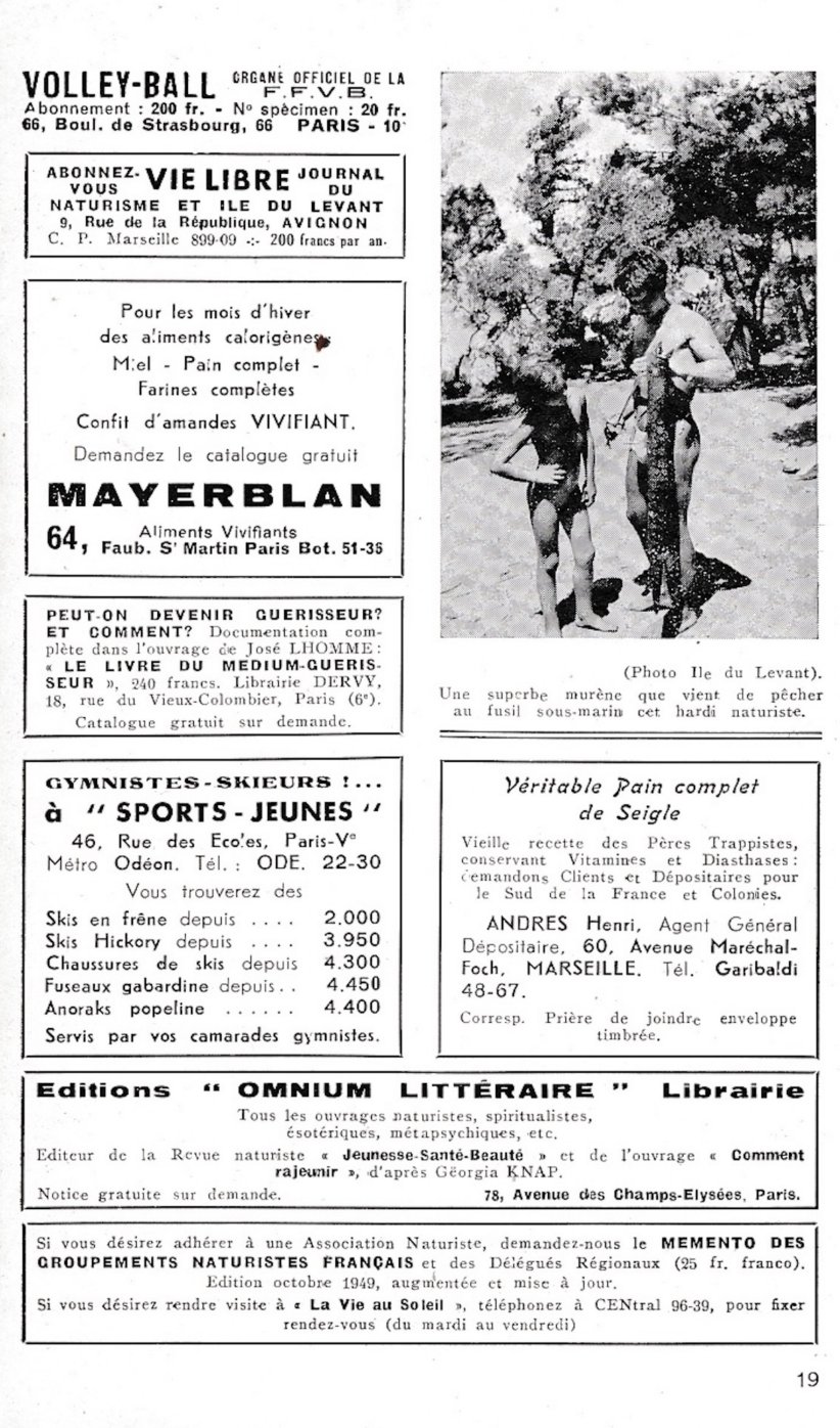 La Vie au SoleilMagazine Naturiste1. Jahrgang Ausgabe 6 • November - Dezember 1949 |