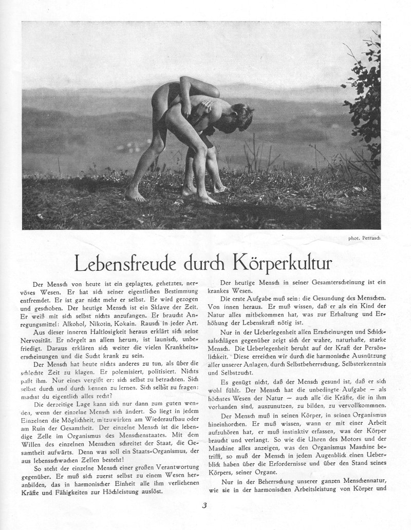 Lebensfreude durch Körperkultur Das Bild der ringenden Jungen von dem Fotografen Petrasch fand auch als Motiv für die Werbung von NIVEA-ÖL (→ Bild) eine Verwendung. |