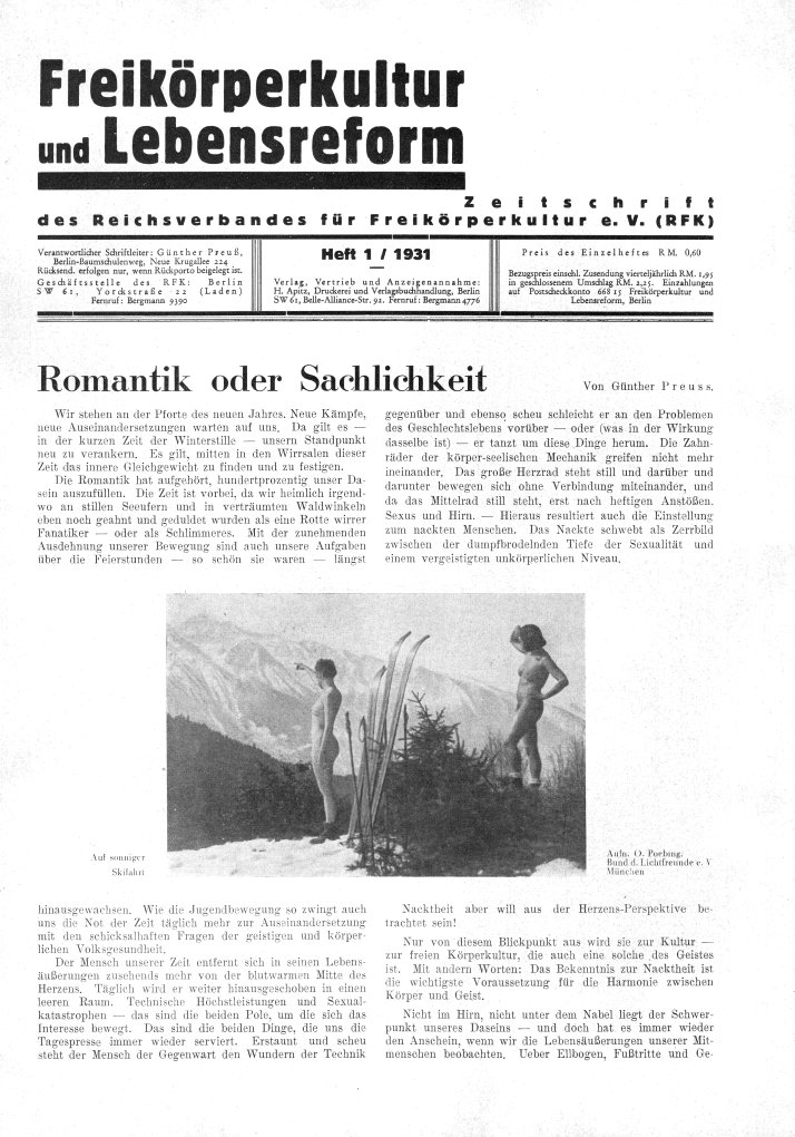 Freikörperkultur und LebensreformReichsverband für Freikörperkultur e.V. (RFK)III. Jahrgang • Januar 1931 |