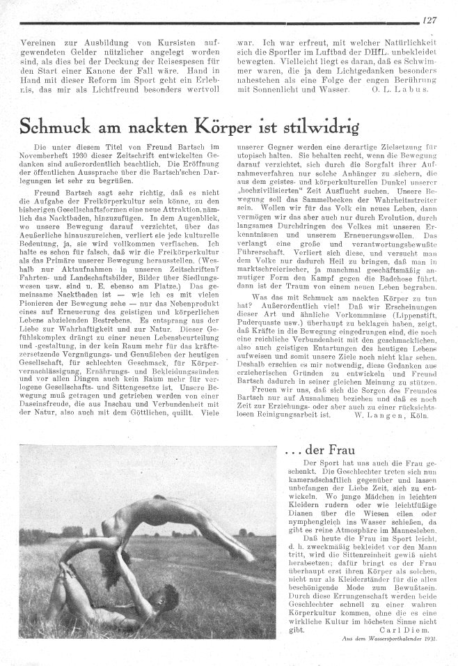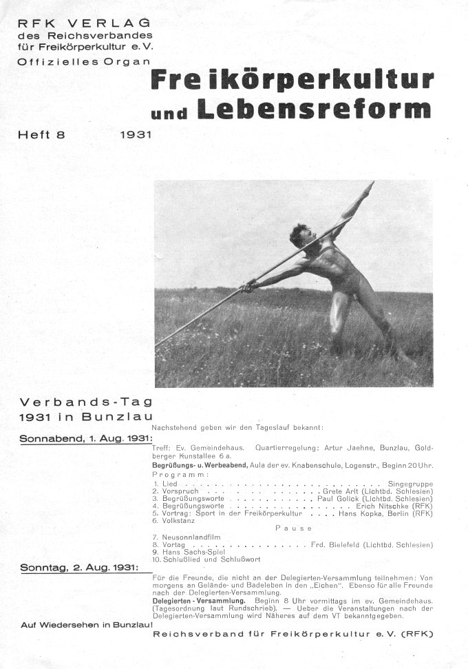 Freikörperkultur und LebensreformReichsverband für Freikörperkultur e.V. (RFK)III. Jahrgang • August 1931 |