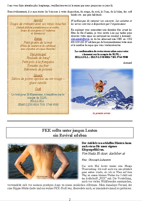 Sports et Loisirs NaturistesLuxemburgAusgabe 261 August - September - Oktober 2019 |
