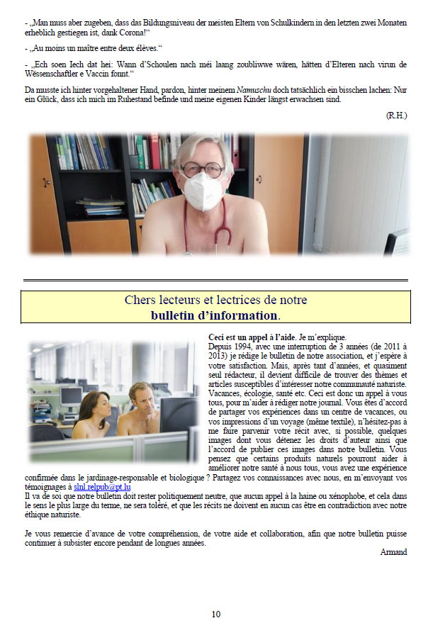 Sports et Loisirs NaturistesLuxemburgAusgabe 265 Juni - Juli - August 2020 |
