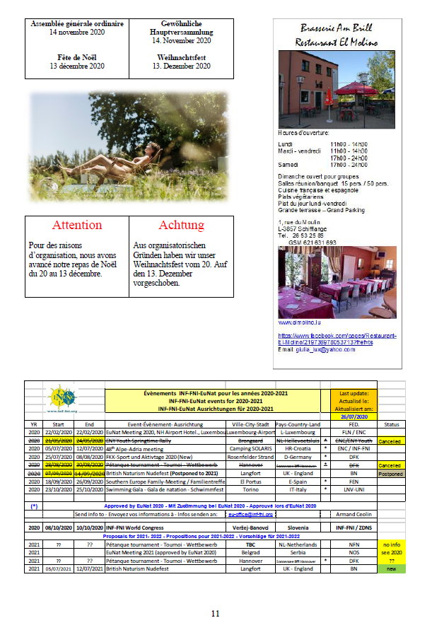 Sports et Loisirs NaturistesLuxemburgAusgabe 266 September - Oktober 2020 |