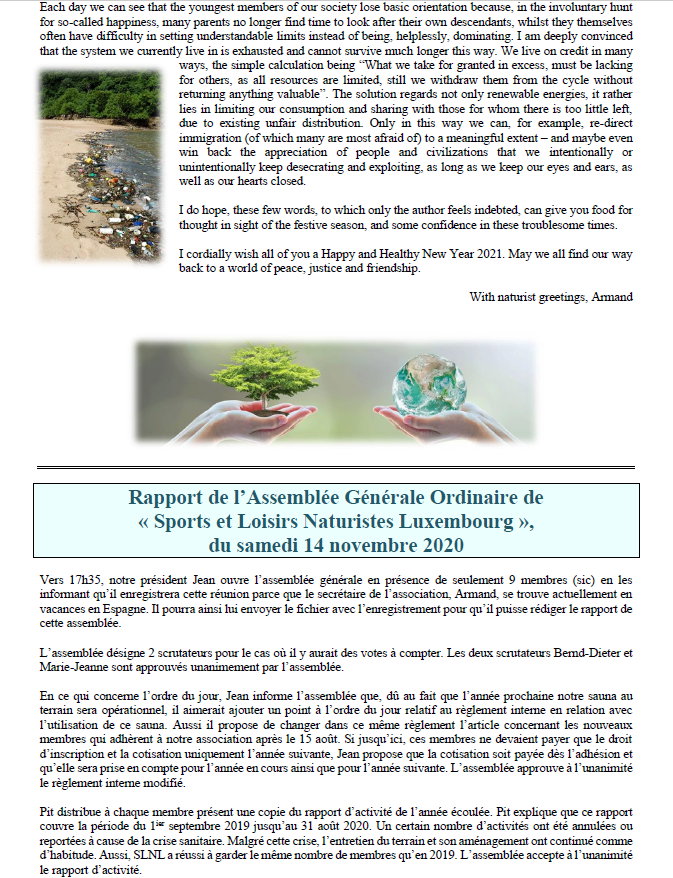 Sports et Loisirs NaturistesLuxemburgAusgabe 268 November - Dezember 2020 |