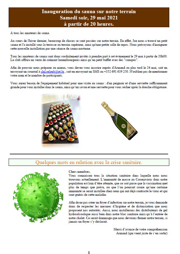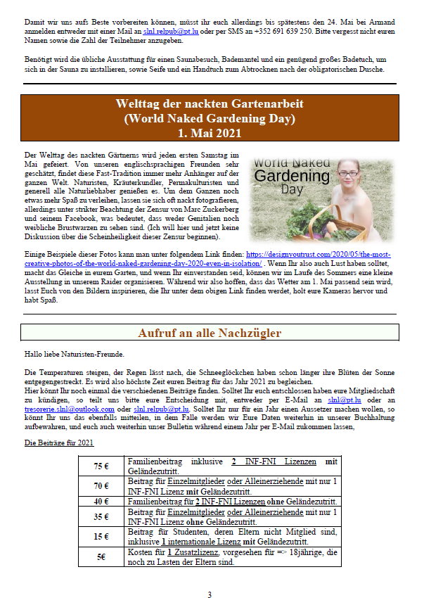 Sports et Loisirs NaturistesLuxemburgAusgabe 270 März - April - Mai 2021 |