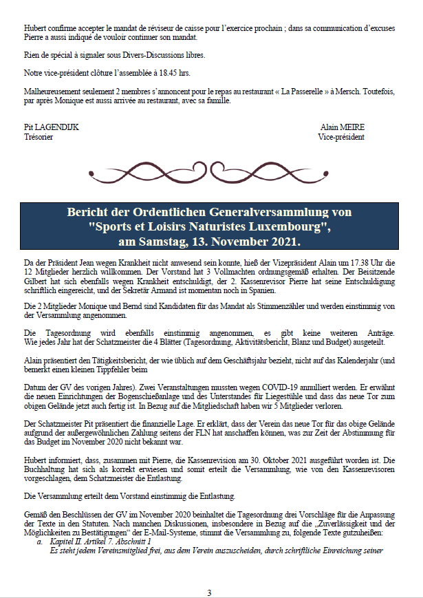 Sports et Loisirs NaturistesLuxemburgAusgabe 274 November - Dezember 2021 |