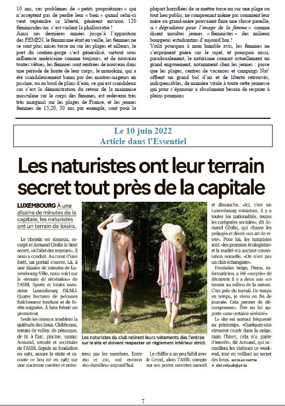 Sports et Loisirs NaturistesLuxemburgAusgabe 278 August - September - Oktober 2022 |