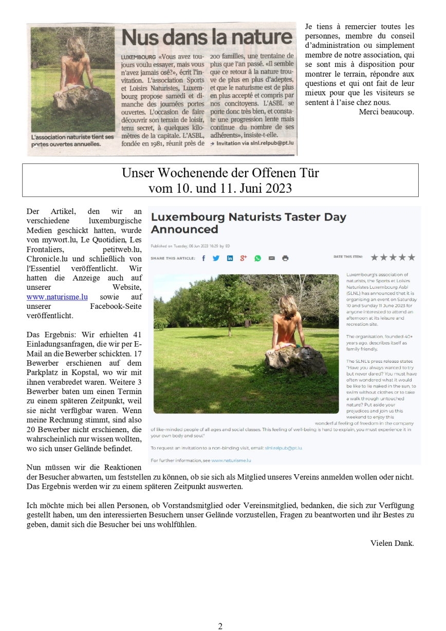 Sports et Loisirs NaturistesLuxemburgAusgabe 284 August - September - Oktober 2023 |
