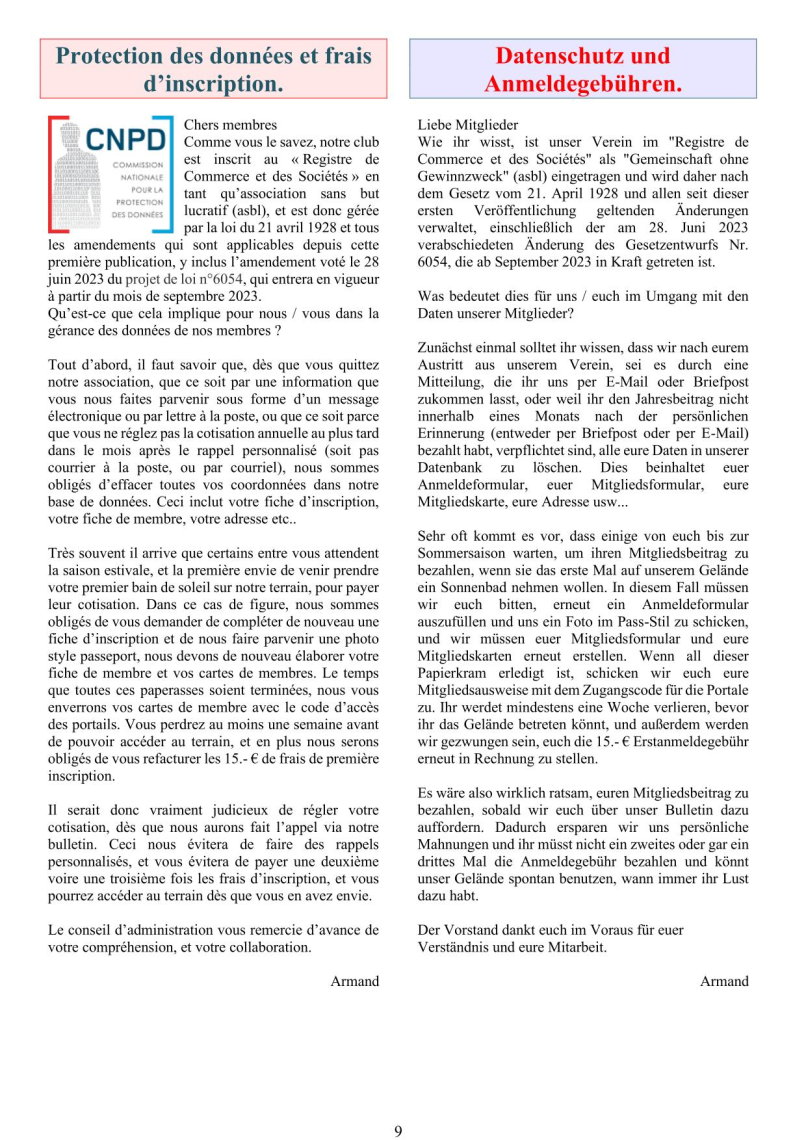 - Protection des données et frais d'inscription
