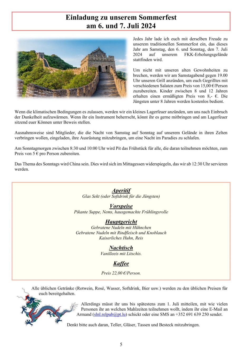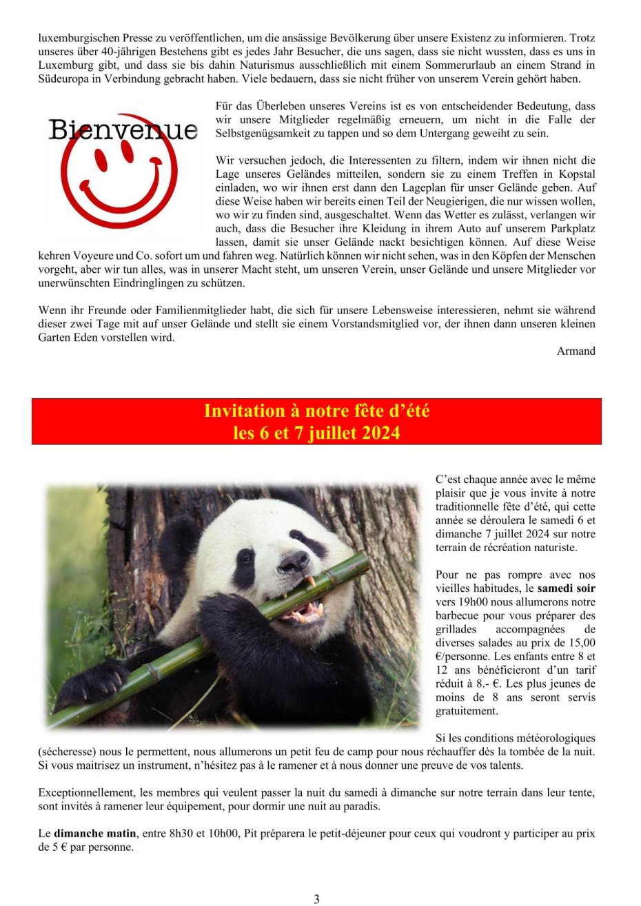 Sports et Loisirs NaturistesLuxemburgAusgabe 289 Mai - Juni - Juli 2024 |