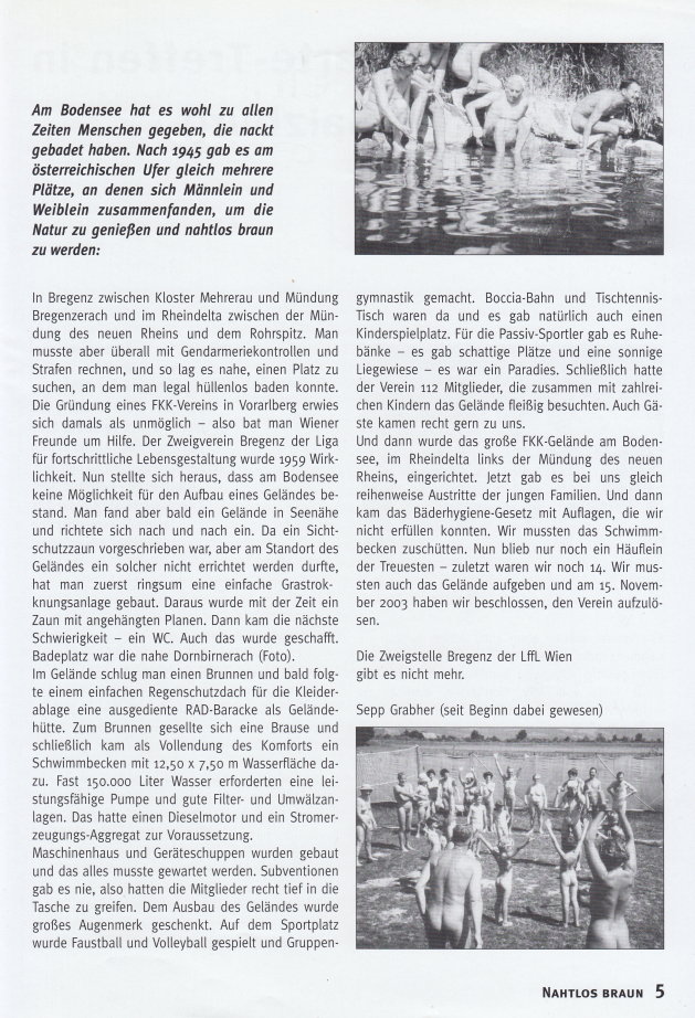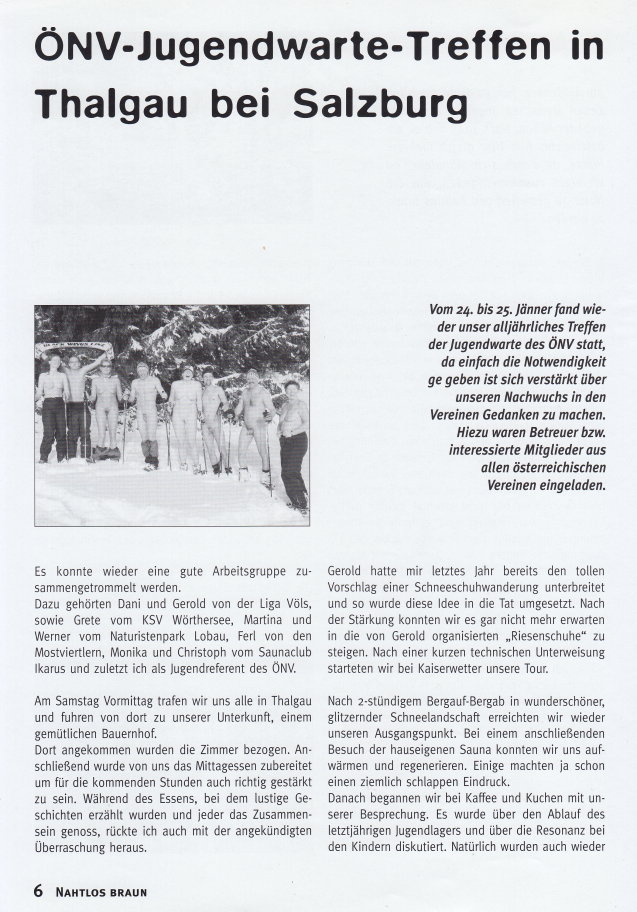 NAHTLOS BRAUNInformationen für FKK-FreundeOffizielles Organ des Österreichischen Naturistenverbandes (ÖNV) Ausgabe 193 Nr. 1 • Frühjahr 2004 |