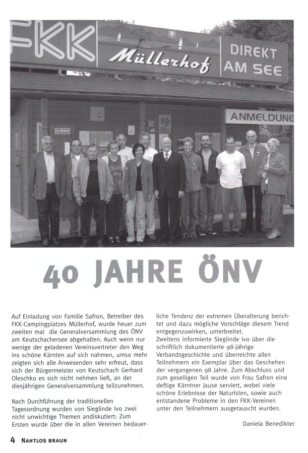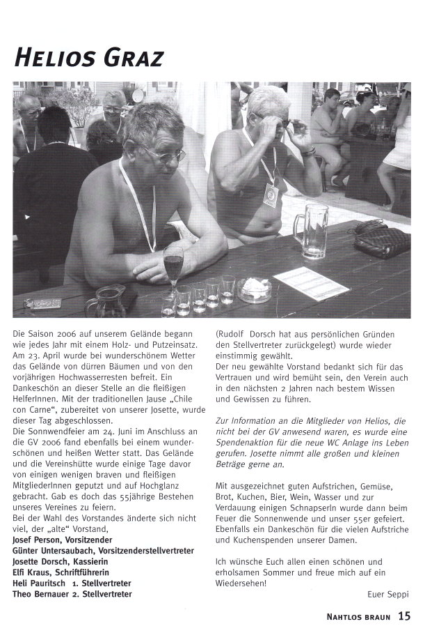 NAHTLOS BRAUNInformationen für NaturistenOffizielles Organ des Österreichischen Naturistenverbandes (ÖNV) Ausgabe 203 Nr. 3 • Herbst 2006 |