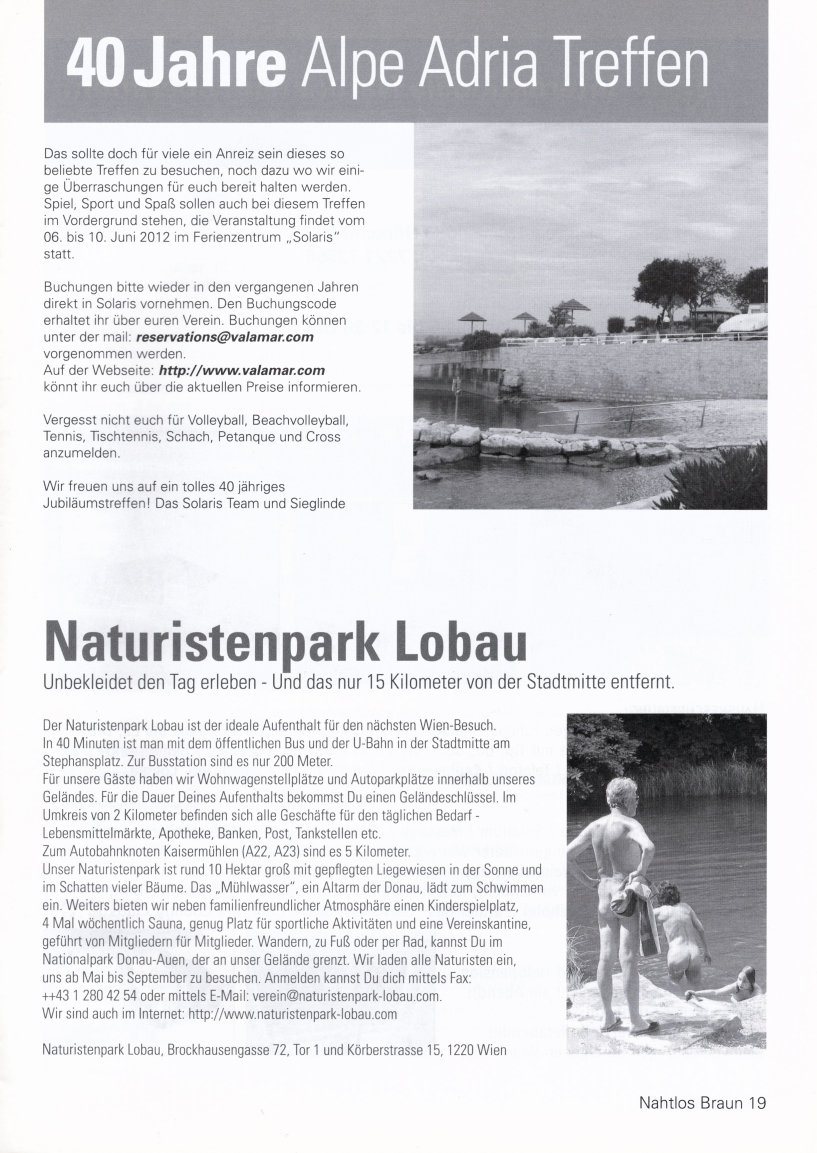 Nahtlos braunInformationen für FKK-FreundeOffizielles Organ des Österreichischen Naturistenverbandes (ÖNV) Ausgabe 225 • Frühjahr 2012 |
