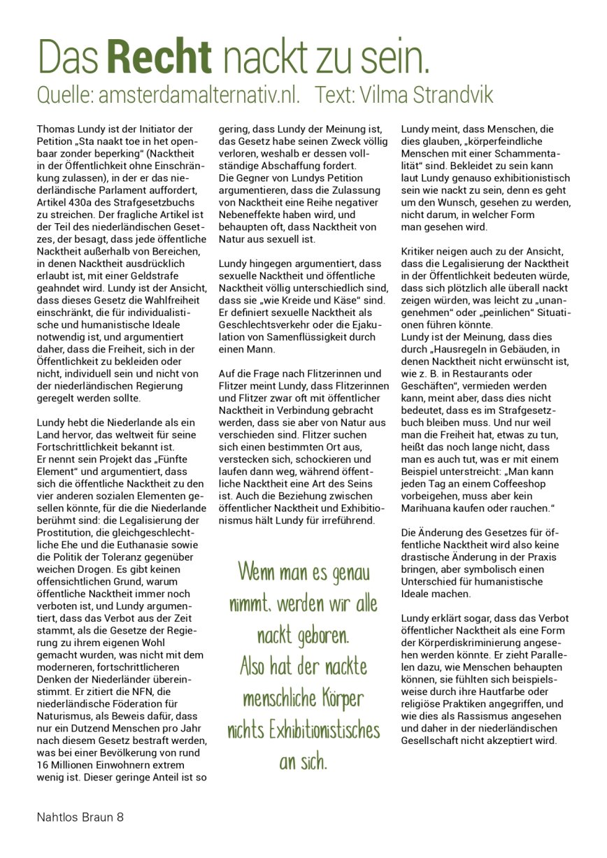 NAHTLOS BRAUNInformationen für NaturistenOffizielles Organ des Österreichischen Naturistenverbandes (ÖNV) Ausgabe 261 • Nr. 2/2022 |