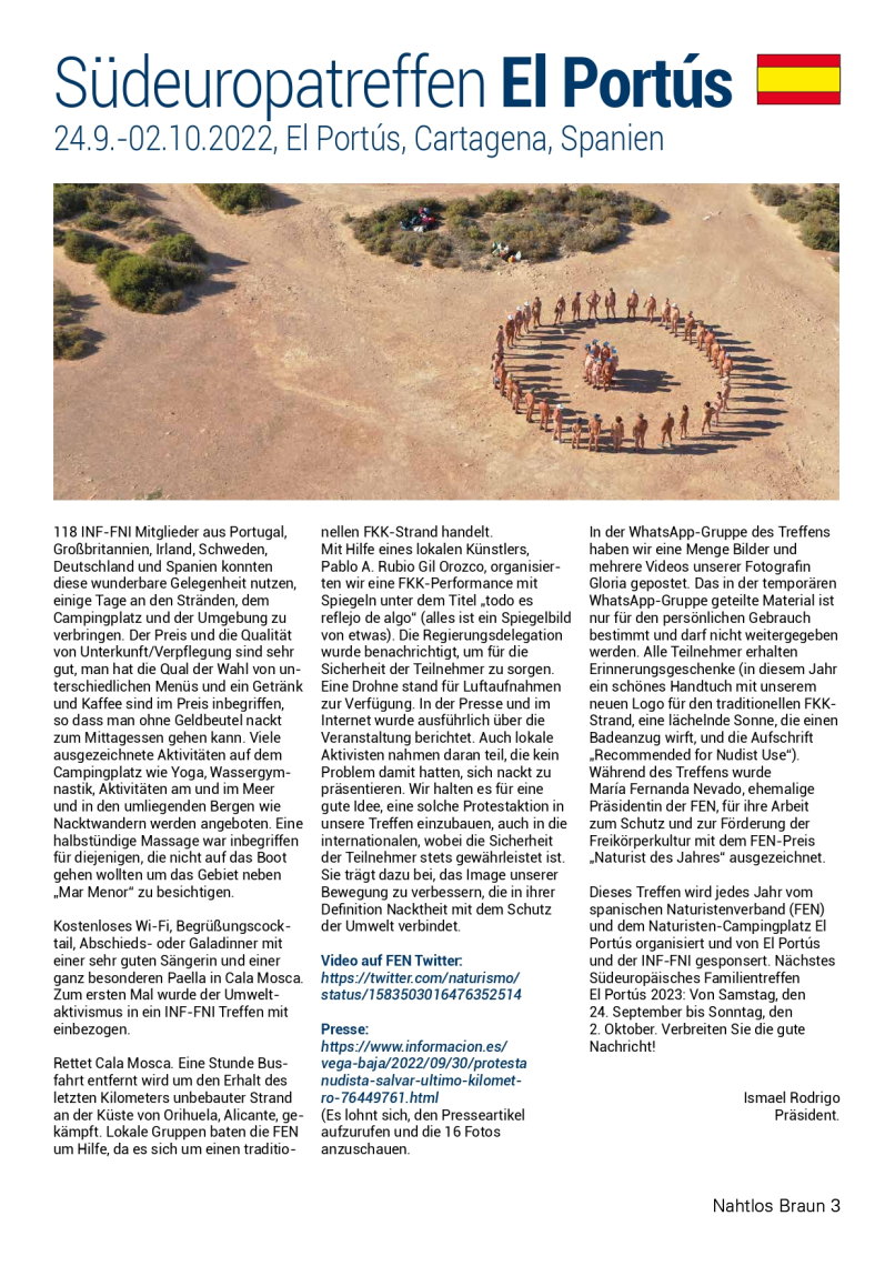 NAHTLOS BRAUNInformationen für NaturistenOffizielles Organ des Österreichischen Naturistenverbandes (ÖNV) Ausgabe 264 • Nr. 1/2023 |
