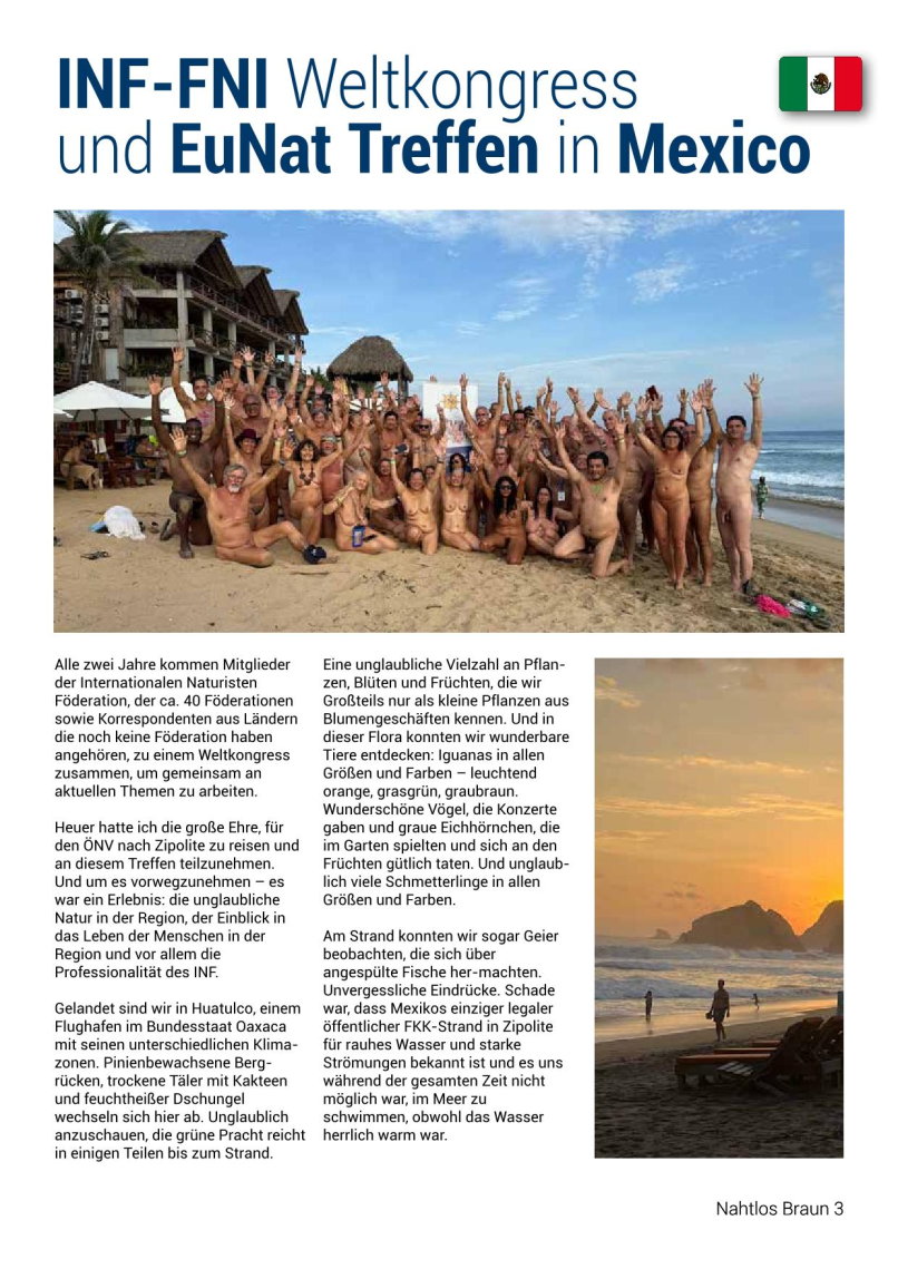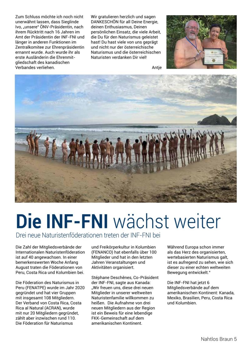 NAHTLOS BRAUNInformationen für NaturistenOffizielles Organ des Österreichischen Naturistenverbandes (ÖNV) Ausgabe 271 • Nr. 4/2024 |