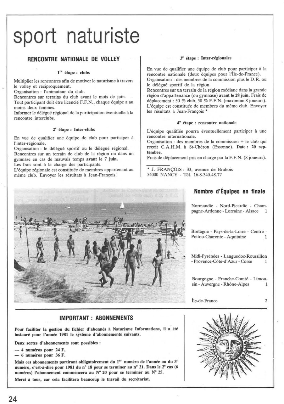 Naturisme InformationsBulletin intérieur de la Fédération Française de Naturisme Ausgabe 18 ✱ 1.Quartal 1981 |