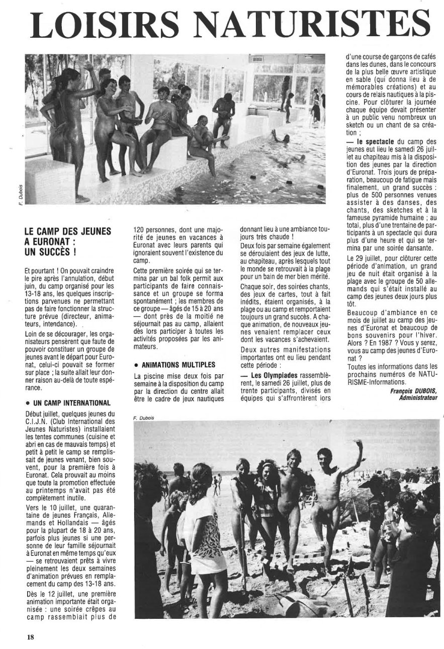 Naturisme InformationsBulletin intérieur de la Fédération Française de Naturisme Ausgabe 40 ✱ November 1986 |
