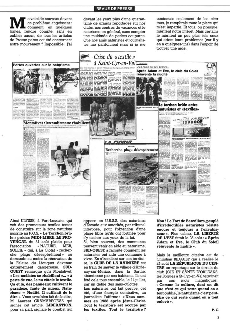 Naturisme InformationsBulletin intérieur de la Fédération Française de Naturisme Ausgabe 49 ✱ Januar 1989 |