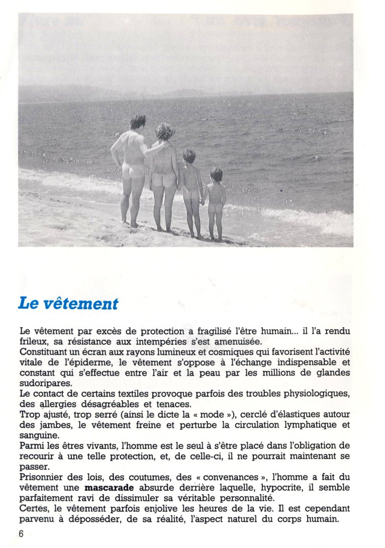 | Dieses Sonderheft, herausgegeben von der Fédération Française de Naturisme (FFN) richtet sich in erster Linie an alle, die sich für eine aktive Zeit im Naturismus interessieren. Die Textbeiträge geben detailliert Auskunft über den Naturismus, unterstützt durch zahlreiche Bilder und Illustrationen. |