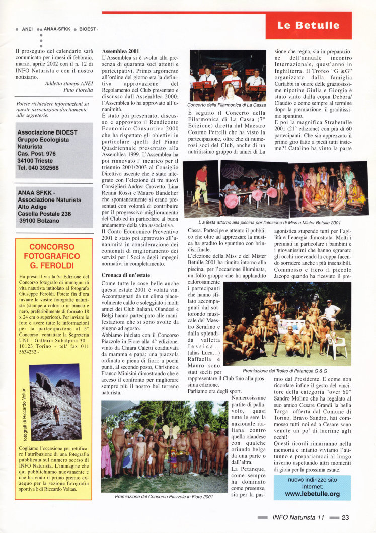 Info NaturistaRivista ufficiale della FENAITItalien Ausgabe 11 • Herbst 2001 |