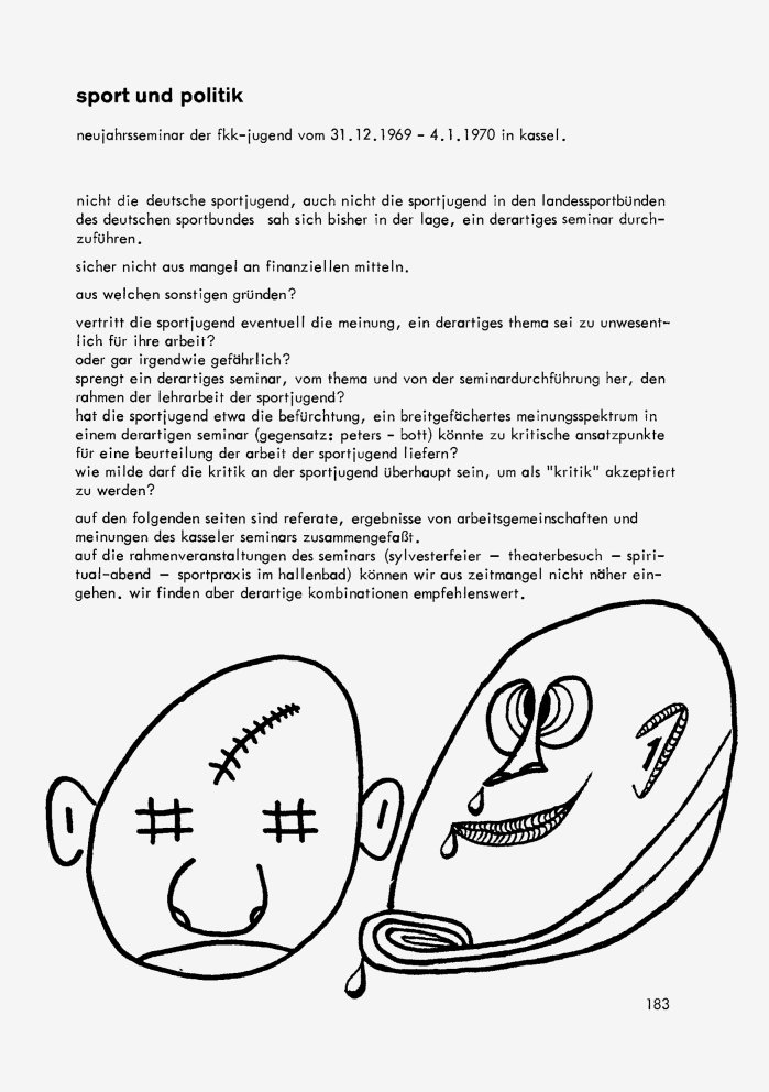 | scheibe 6 „scheibe” war die erste Hintergrundzeitschrift des Sportes für Demokratie, Sport und Spaß am Sport. Der Sport wird hier von seiner politischen Seite betrachtet und geht der Frage nach, inwieweit die Politik Einfluß auf den Sport und welche Rolle der Sport in der Politik hat. Hier am Beispiel „Olympia”. |