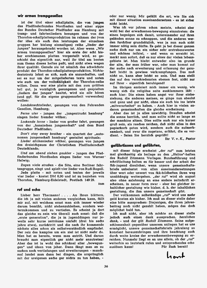 der rufgemeinschaftsbriefe der fkk-jugendAusgabe 56 - Juli 1962 |