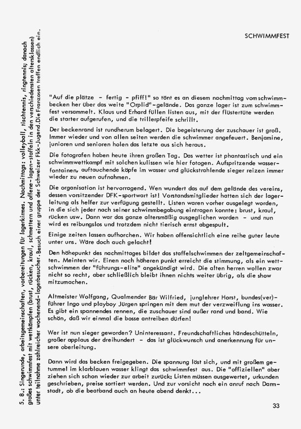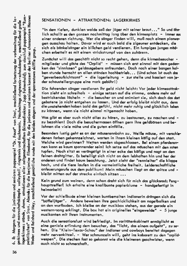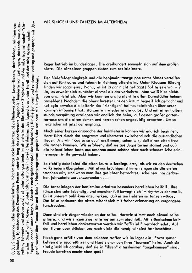 | Anmerkung: Das Bundeslager 1967 in Darmstadt ist wohl das am besten dokumentierte fkk-jugendlager überhaupt und zeigt die große Vielfalt der Aktivitäten und Angebote. E.H. |