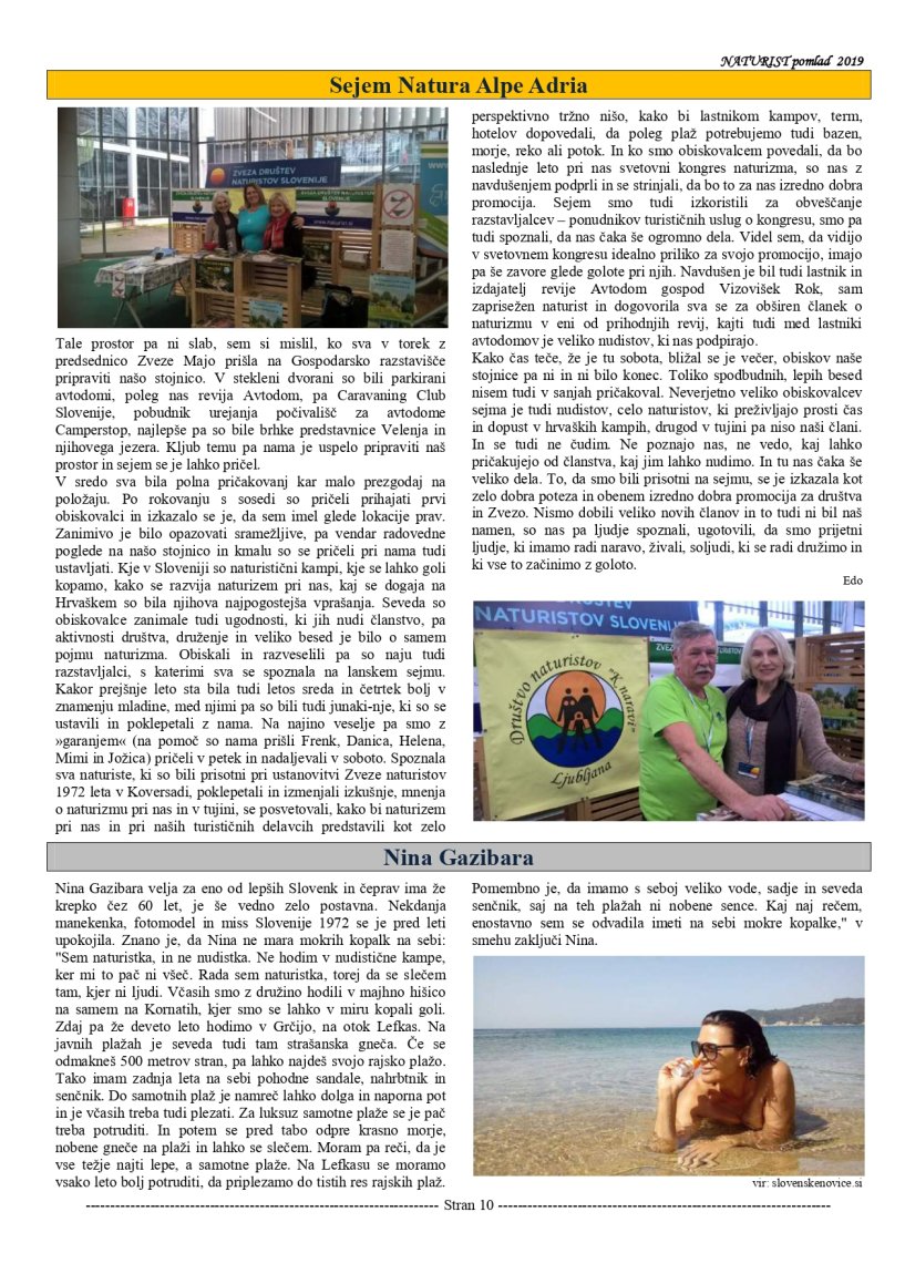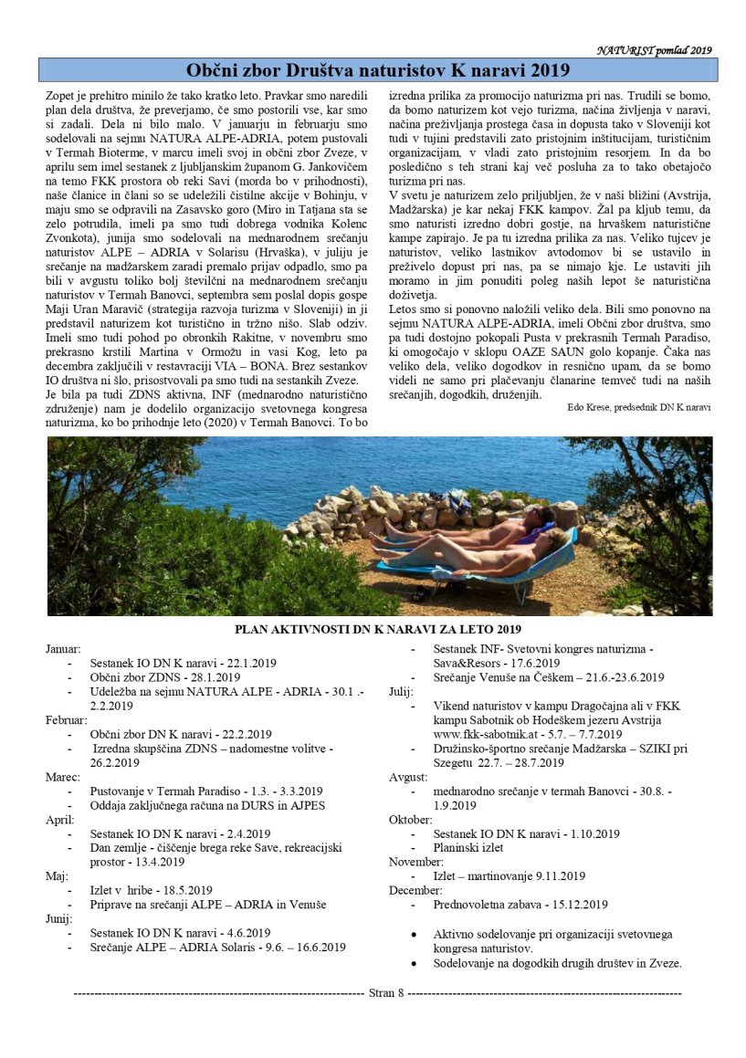 Pomembnejši naturistični dogodki v 2019
