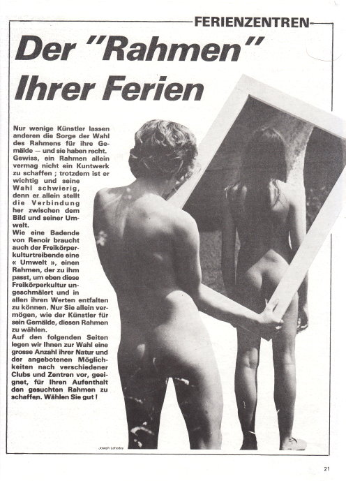 | Diese Erstausgabe trägt, wie auch die Folgeausgabe, die Nummer »1« und wäre damit eigentlich die Nummer »0«. Diese Sonderausgabe soll die FKKlerinnen und FKKler in Deutschland auf die Heftreihe „Sonne und Leben” neugierig machen. |