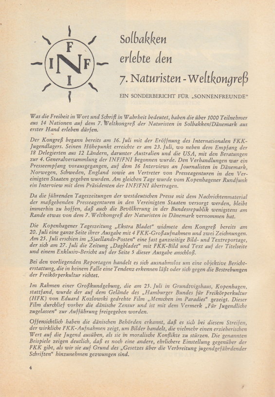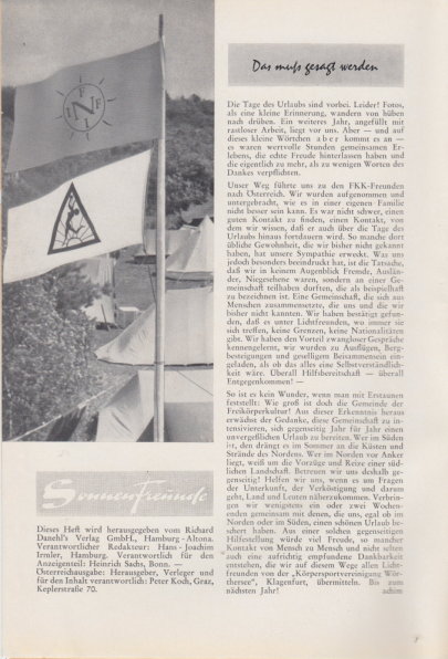 Die Zeitschrift Sonnenfreunde erschien von 1951 bis in die 1970er Jahre im Richard Danehl's Verlag.