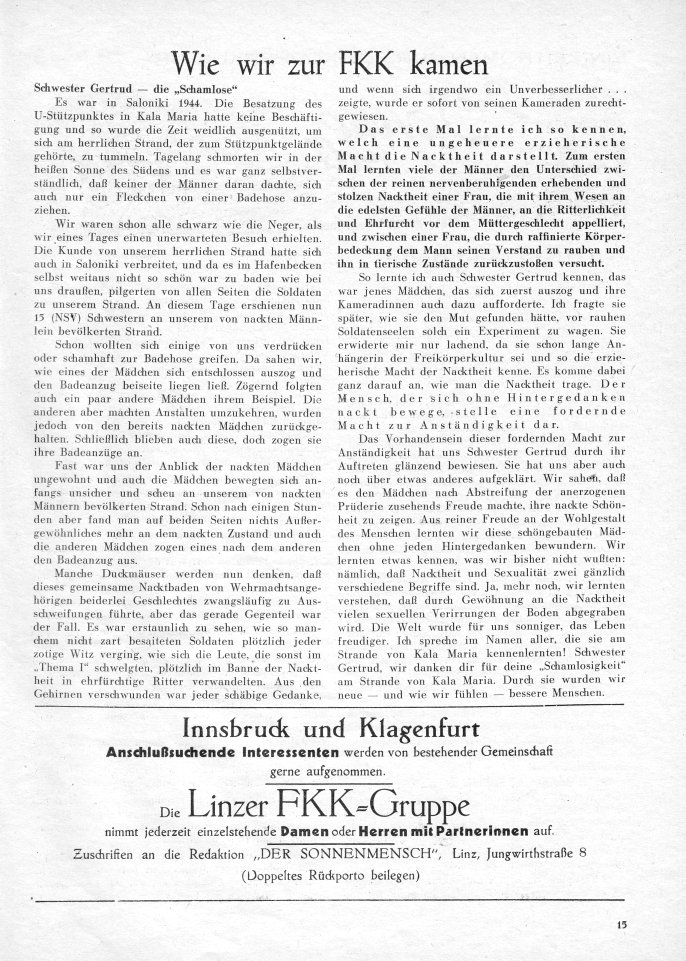 Der SonnenmenschZeitschrift für fortschrittliche und moderne Freikörperkultur1. Jahrgang • Heft 6 Juli 1949 |