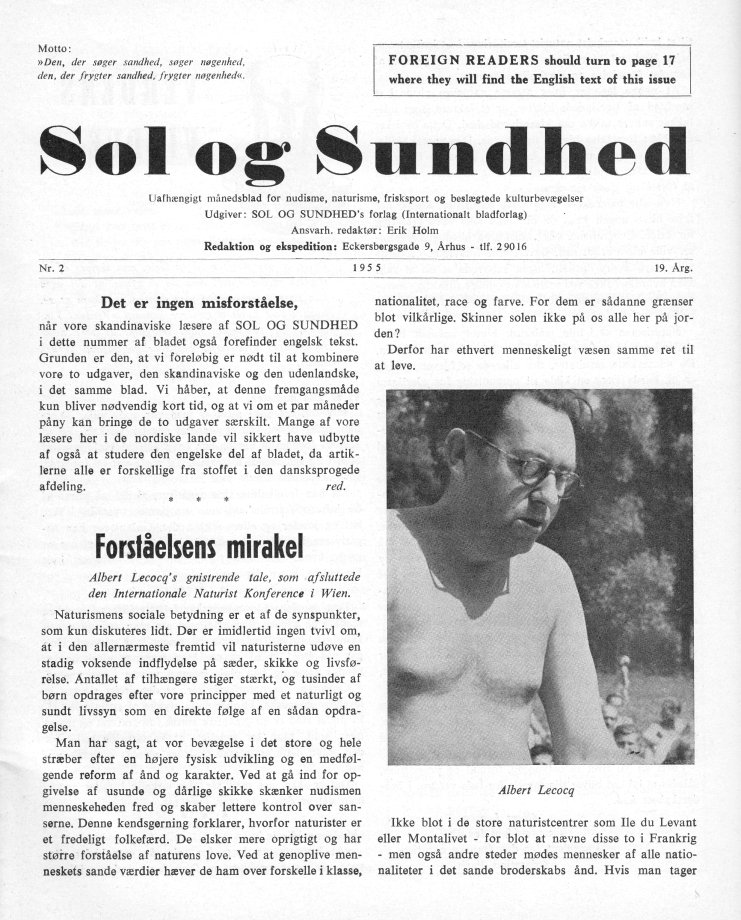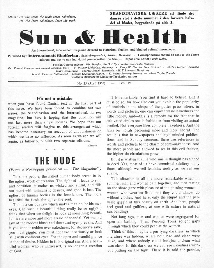 Die skandinavische Ausgabe 2/1955 entspricht der „Sun and Health”-Ausgabe 4/1955 (April 1955)