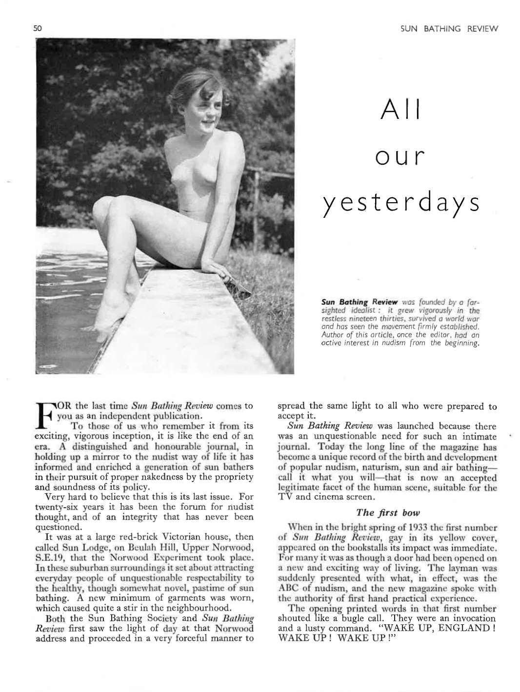 Sun Bathing ReviewQuarterly Journal of the Sun SocietiesHerbst 1959 Vol. 27, No. 107 |