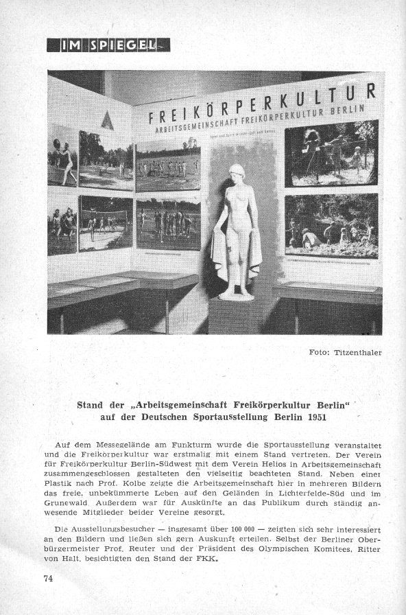 | Im Spiegel Bericht über den Messestand der AG Berlin auf der Deutschen Sportausstellung in Berlin 1951. |