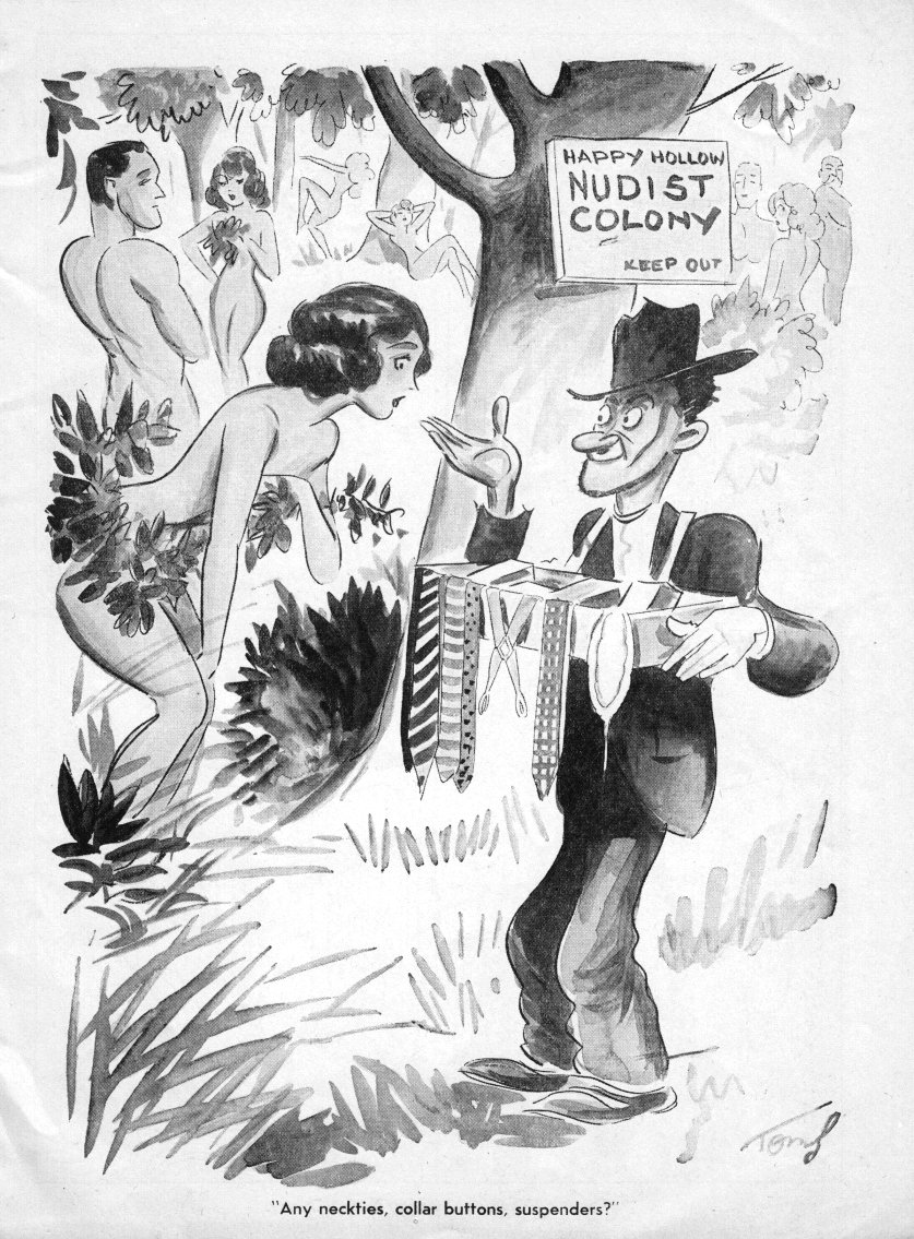 | Keine reguläre Nudisten-Zeitschrift. „Hooey” war eine in den USA monatliche erschienene Comic-Zeitschrift. In dieser Ausgabe ging es bei den Zeichnungen und Witzen speziell um die Nudisten. |