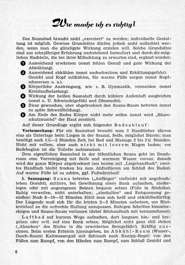 Gesund durch SaunaZeitschrift zur Pflege des Saunabadensund zur Förderung gesunder Lebensführung und Körperpflege Heft 1 • 1958 Sauna richtig und regelmäßig |