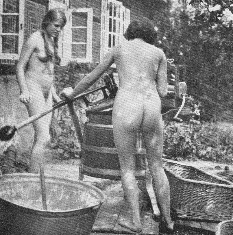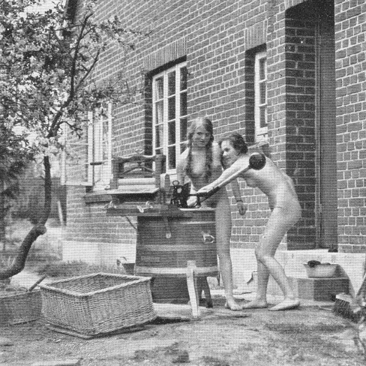 Später, gegen Ende der 1920er Jahre, gab es dann bereits elektrisch angetriebene Wasch-Maschinen, in Kombination mit einer ebenfalls elektrisch angetriebenen Wrangel.